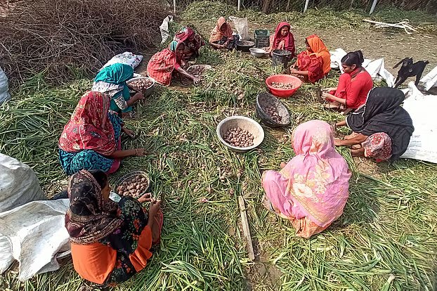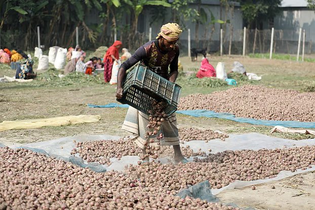 পেঁয়াজ পরিচ্ছন্ন ও বাজারজাতকরণে স্থানীয় নারীদের ভূমিকা চোখে পড়ার মতো। ছবিগুলোতে দেখা যায়, গ্রামের নারীরা দলবেঁধে বসে পেঁয়াজের সবুজ পাতা কেটে আলাদা করছেন এবং আকার অনুযায়ী বাছাই করছেন। এতে গ্রামীণ অর্থনীতির চাকা সচল হওয়ার পাশাপাশি স্থানীয় নারীদের জন্য বাড়তি আয়ের সুযোগ সৃষ্টি হয়েছে।